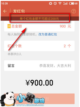 1、在微信发群红包,单次支付总金额不能超过20000元;