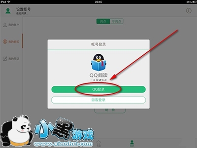 1、要实现同步首先需要在QQ阅读软件的账号登录位置登录自己的账号,如果使用游客登录是无法同步数据的。