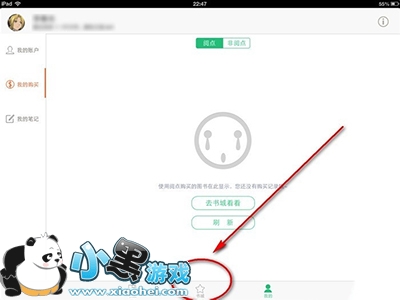 3、登录后首先进入自己的个人中心页面,点击【书城】进入在线书城的页面。