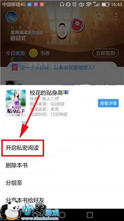 QQ阅读开启私密阅读的方法: