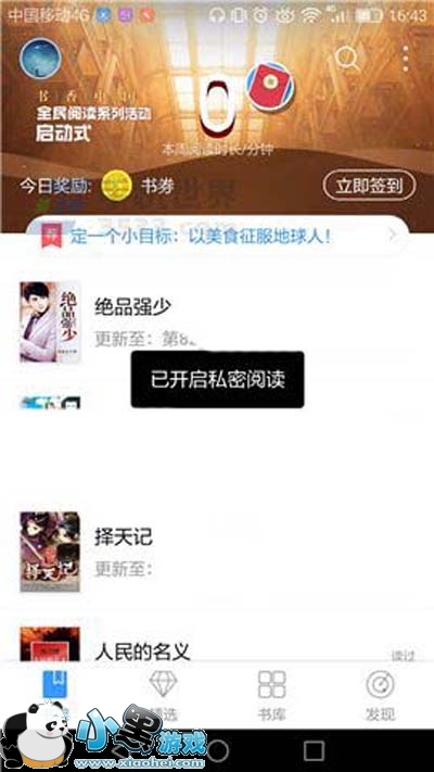 2)点击后出现【已开启私密阅读】就证明完成了。(如下图)