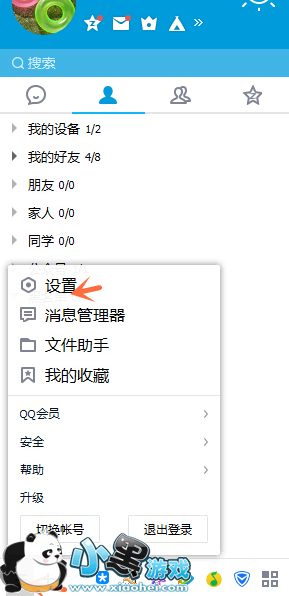 1、在电脑上登录QQ,登陆后,点击主面板的菜单按钮,选择“设置”选项,