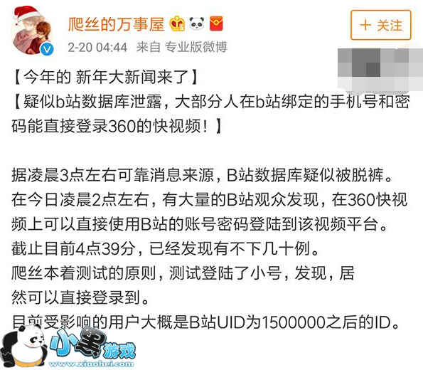 根据可靠消息来源,在今日凌晨2点左右,有大量的B站观众发现,可以直接使用B站的账号密码登录360快视频,已经发现有不下几十例,受影响的用户多为B站UID为1500000之后的ID。