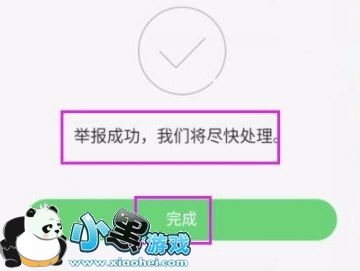 接着我们就可以看到举报成功的信息,点击“完成”即可。