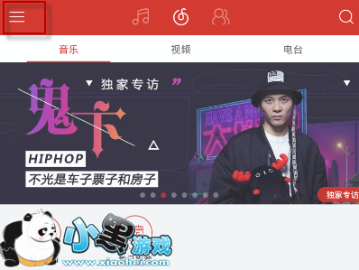 1、我们打开手机网易云音乐,在主页面左上角会看到有一个“三个横杆”图标,点击它。