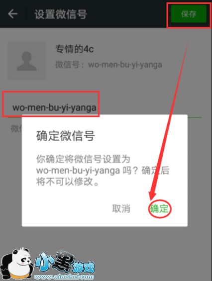 6、弹出确认是否要设置成这个微信号,因为修改之后不能再次修改了。如果确认没问题,点击确定即可。