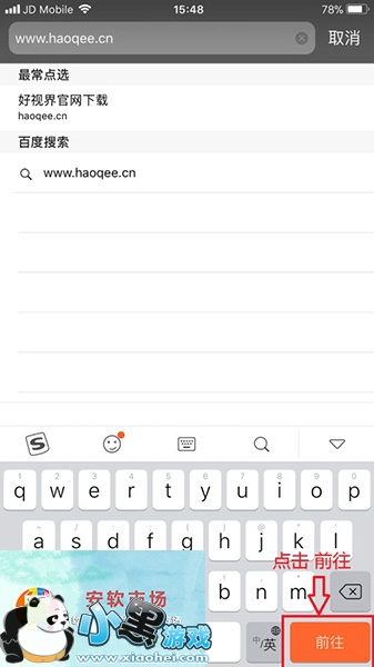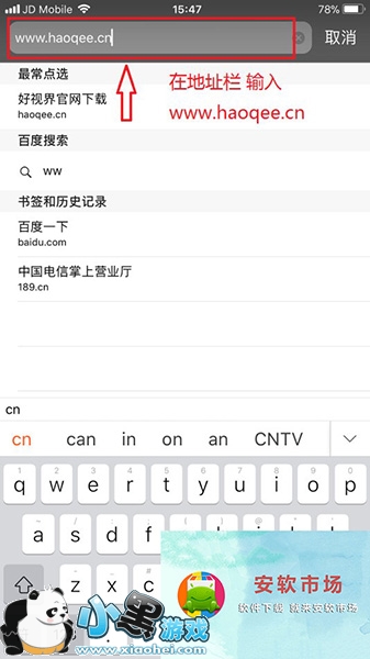 1、首先我们使用苹果自带的浏览器,然后输入好视界官网地址www.haoquee.sn