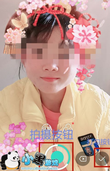 3.视频拍到你所需要的时间,可以点击“拍摄按钮”,然后再点“打钩按钮”,确定视频,如图所示。