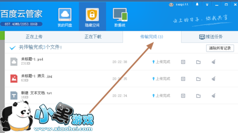 7、上传完成之后,可以在“传输完成”中查看已上传的文件,也可以查看历史上传文件记录。