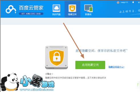 2、点击:“启用隐藏空间”。隐藏空间的文件不能分享,只能自己查看。