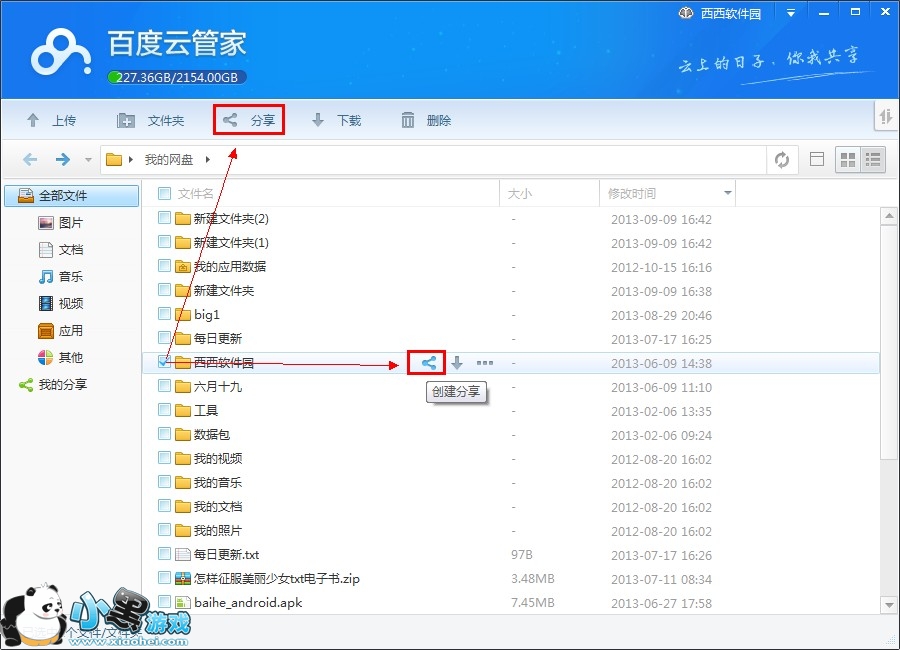 3.勾选文件夹进行分享,两个分享按钮任意点击一个