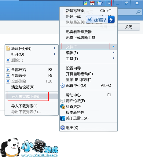 1、“文件”--“导入未完成下载”--浏览找到之前没下完的文件,然后选中这个电影的.td文件(迅雷自己创建的),然后确定就可以了”