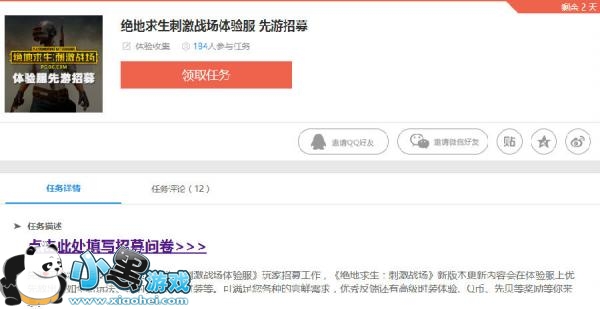 绝地求生刺激战场体验服:招募时间:2018年2月24日