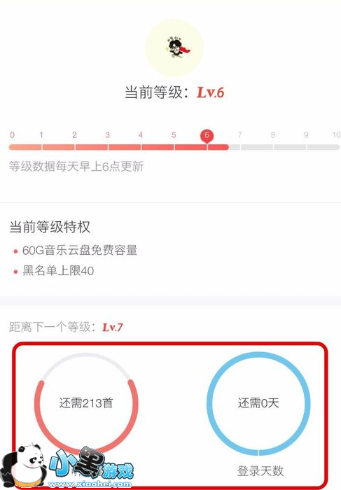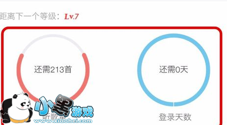 4.进入等级页面后,我们就会看到升等级需要哪些条件,一个是天数,一个是听歌量。