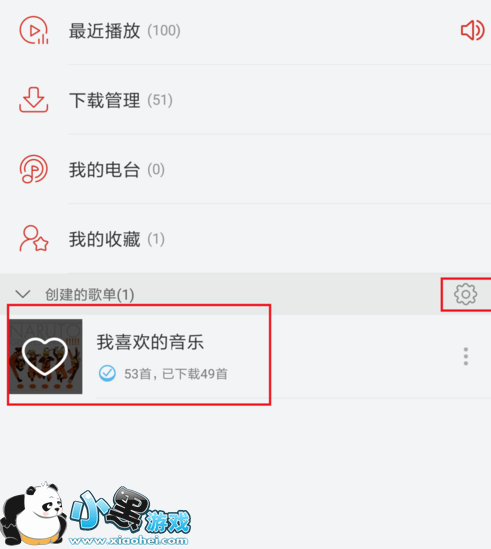 2.点击如图所示红框内的设置标志,可以打开新建歌单,建立一个新建歌单。
