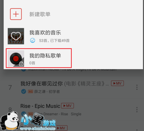 6.选择隐私歌单。那么现在的歌单除了自己的别人是看不到的。