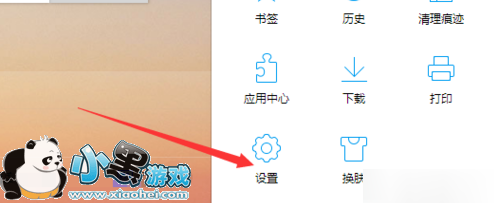 2.然后在弹出的设置界面中,点击图示位置的“设置”,进入浏览器设置界面。