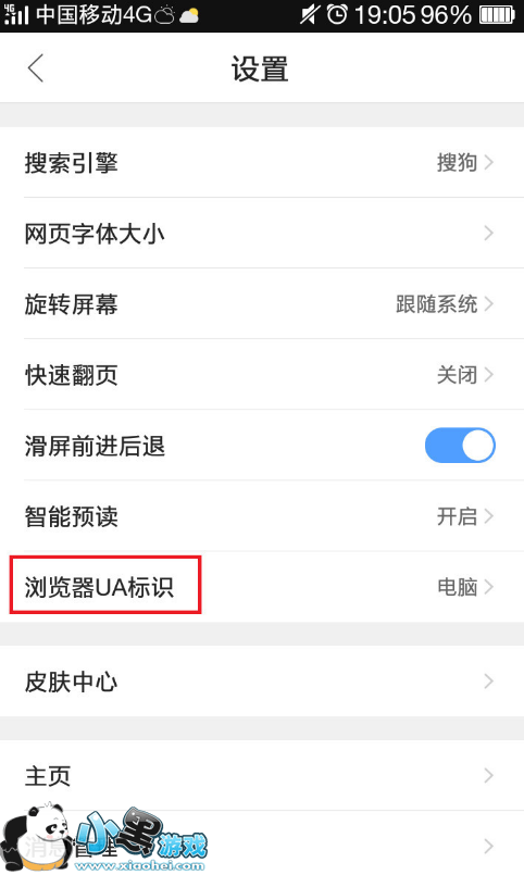 3、在“设置”界面选择“浏览器UA标示”;
