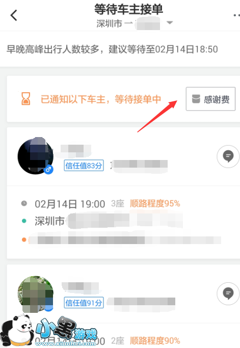 7.这时候就会显示顺风车订单发布成功,滴滴也会及时的告知相应的车主,当然如果想提升接单率的话,还可以增加感谢费,进行相应金额的设定。