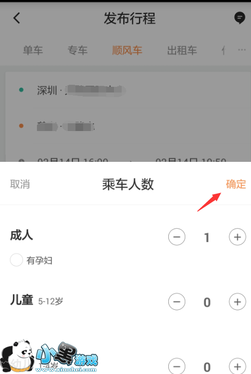 5.出发时间设置完成后,会来到乘车人数的设置步骤,可以根据实际乘车的人数进行设置即可。