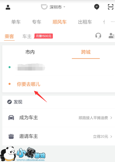3.接着回到顺风车跨城界面,再点击“你要去哪儿”进行终点的设置。
