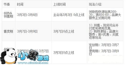 38天猫女王节活动预热:2018年3月3日00:00:00-2018年3月6日23:59:59;正式活动:2018年3月7日00:00:00-2018年3月9日23:59:59。