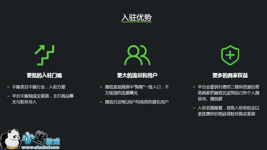 目前看来,入驻条件应该会比较宽松,但是可以肯定的是有过运营的电商用户,肯定是会有一定的优先权,微盟,有赞的用户不失为一个喜讯。