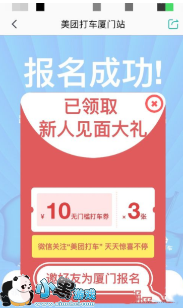 4.报名完成后,点击乘客按键,还可以获得3张优惠券