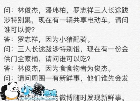 最后,罗志祥还不忘发出“小猪配骑”脑洞题的衍生版,并艾特了另外两位被殃及到的主人公:林俊杰和潘玮柏,喊话道:“你们别以为没有你们的事。”引得潘玮柏回复:“一句话,单车是你的,那你载我吗?”十分爆笑。