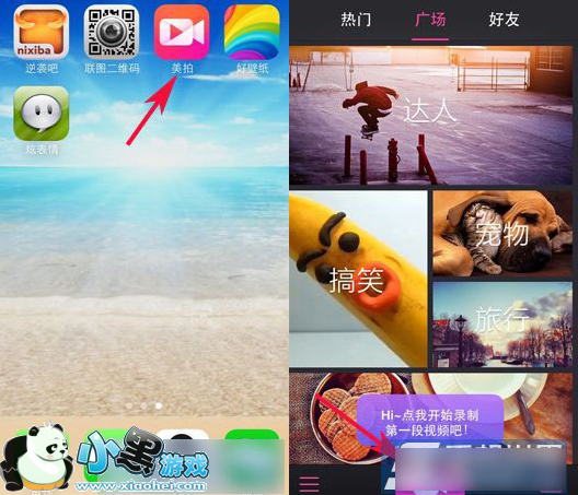 1)首先点击【美拍】打开(点击下载美图美拍),准备好了吗?点击下方【录制】按钮。(如下图所示)