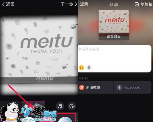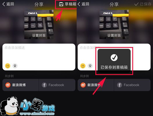 4)在美拍最后的分享界面里,大家不要点击分享就不会上传分享出去了,想要保存可以直接点击右上角的【草稿箱】,点击后会弹出提示【已保存到草稿箱】即可。(如下图所示)