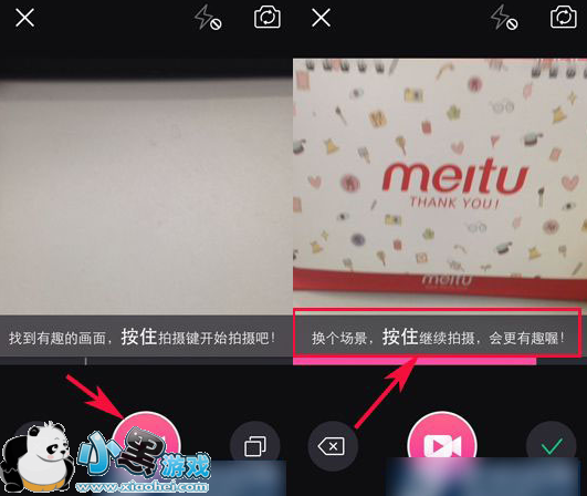 2)找到有趣的画面,按住即为拍摄,松开即为停止拍摄。大家可以录制完一段后送开手,等待下一个场景再继续拍。(如下图所示)