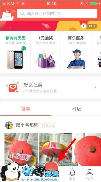 1、首先,打开转转app主页,点击箭头所指的+号位置!