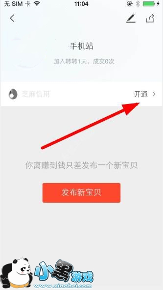 2、然后,在个人中心里,点击芝麻信用后面的开通位置!