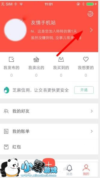 1、首先,打开转转,在我的里点击箭头所指的位置!