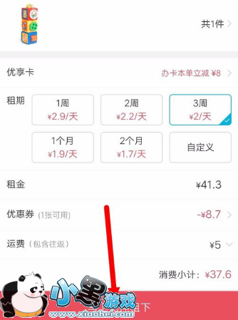 选择好后我们可以选择租赁也能直接购买。下面我以租赁为例说明操作方法。选择好玩具,可以选择租赁的时间,选择完毕直接点击下面的直接免押金租下就行了。
