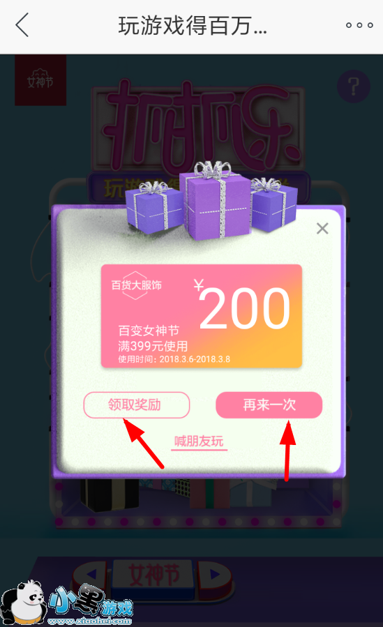 3、这样一来,大家就可以通过抓抓乐的方式来领取各种优惠券,如果对该抓到的礼品不满意,还能够通过点击“再来一次”重新进行抓取。