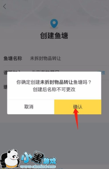 4.创建鱼塘需要填写的信息并不多,有鱼塘的名字和塘规就可以了,填写完成以后,点击“确认创建”就可以啦。