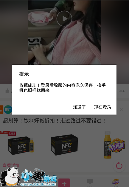 5.点击过后,界面中,会出现收藏成功的提示,那么,这样你就可以去自己的收藏里面找了。如果登录就要先进行登录哟!