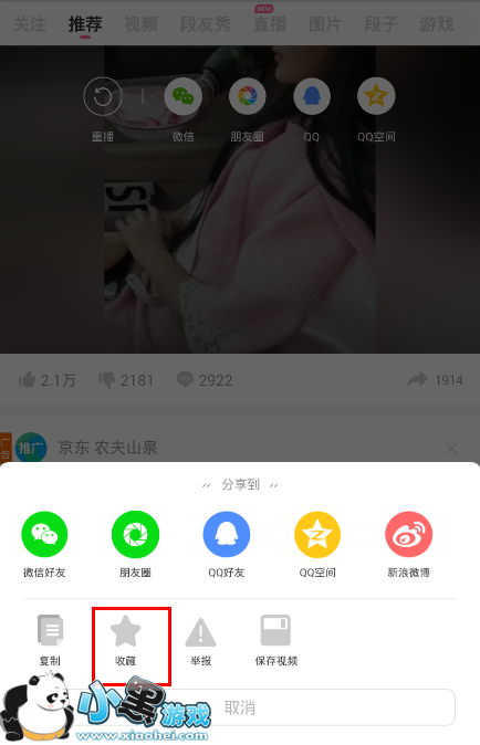 2.在浏览段子时,看见了一个自己感觉不错的视频,那么,这时,肯定就想要收藏它了。