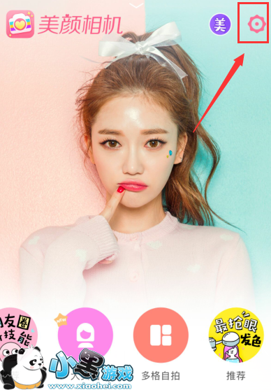 第二步,进入到美颜相机页面中,在右上角上找到一个设置标志,点击进入。