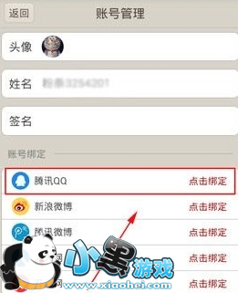 3、在账号管理里面看到QQ按“点击绑定”,如下图: