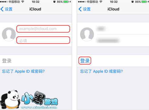 3.登录您的iCloud帐户。输入您的用户名和密码,然后点击“登录”。