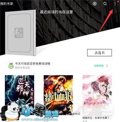 1、进入书旗小说主界面之后,直接选择右上角红色箭头符号所指示的地方。