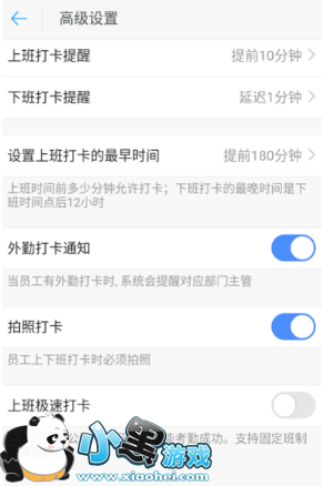 将拍照打卡的开关打开即可,点击保存按钮,这样就可以在下一次打卡的时候要拍照打卡了。