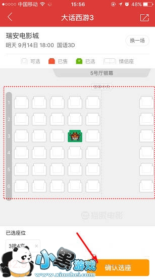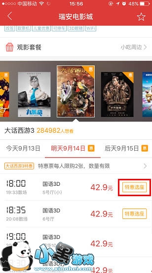 4、点击“选座购票”或者“特惠选座”进入选座页面,然后你就可以选择你想要的座位。