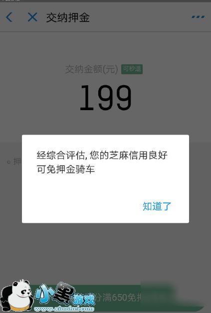 2、芝麻信用达到650分即可免押金