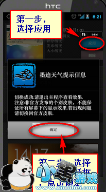 5、点击想要显示的皮肤之后,第一步选择应用,在选择确定