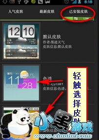 4、这里我们可以看到,墨迹提供在线下载皮肤,选择已安装的皮肤,按图操作即可选择需要的皮肤