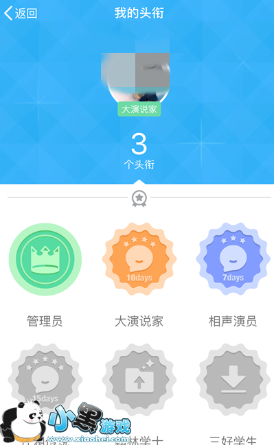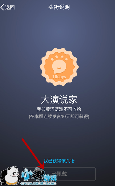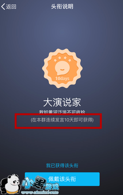 4.点击后,我们就进入到大演说家勋章的界面,上面会提示你,如何获得的这个勋章,我们需要连续10天发言即可。